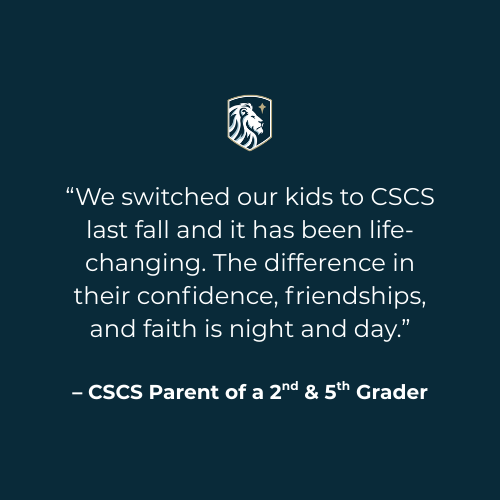 “We switched our kids to CSCS last fall and it has been life-changing. The difference in their confidence, friendships, and faith is night and day.” – CSCS Parent of a 2nd and 5th Grader